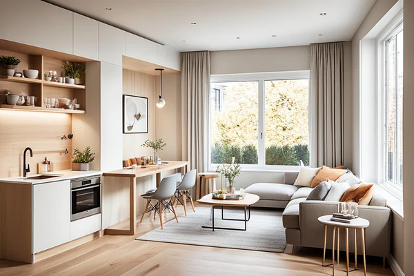 Los tonos neutros y acabados reflectantes generan sensación de amplitud, mientras que los materiales ligeros facilitan movilidad.